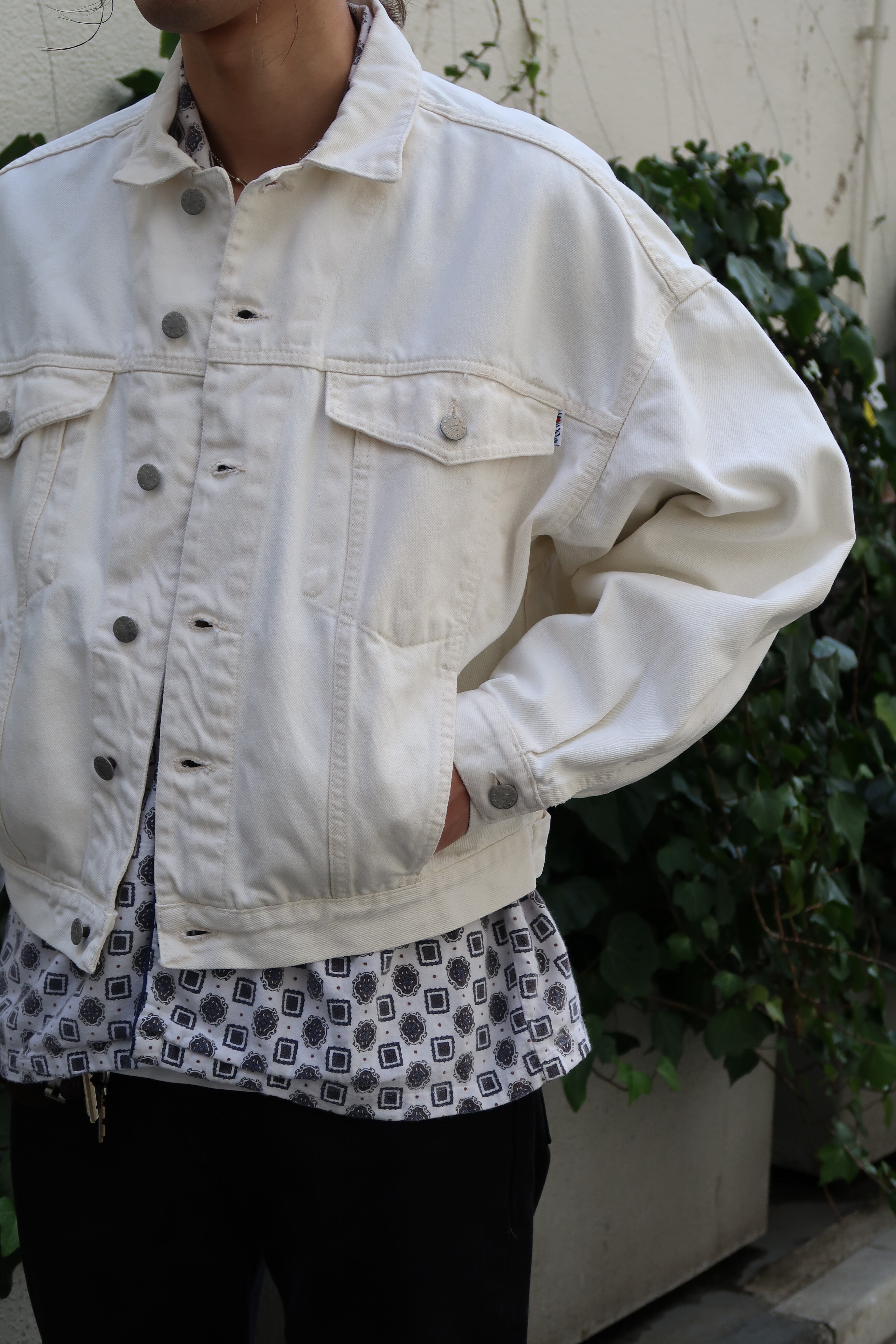 イタリアメイドのホワイトデニムジャケット。
