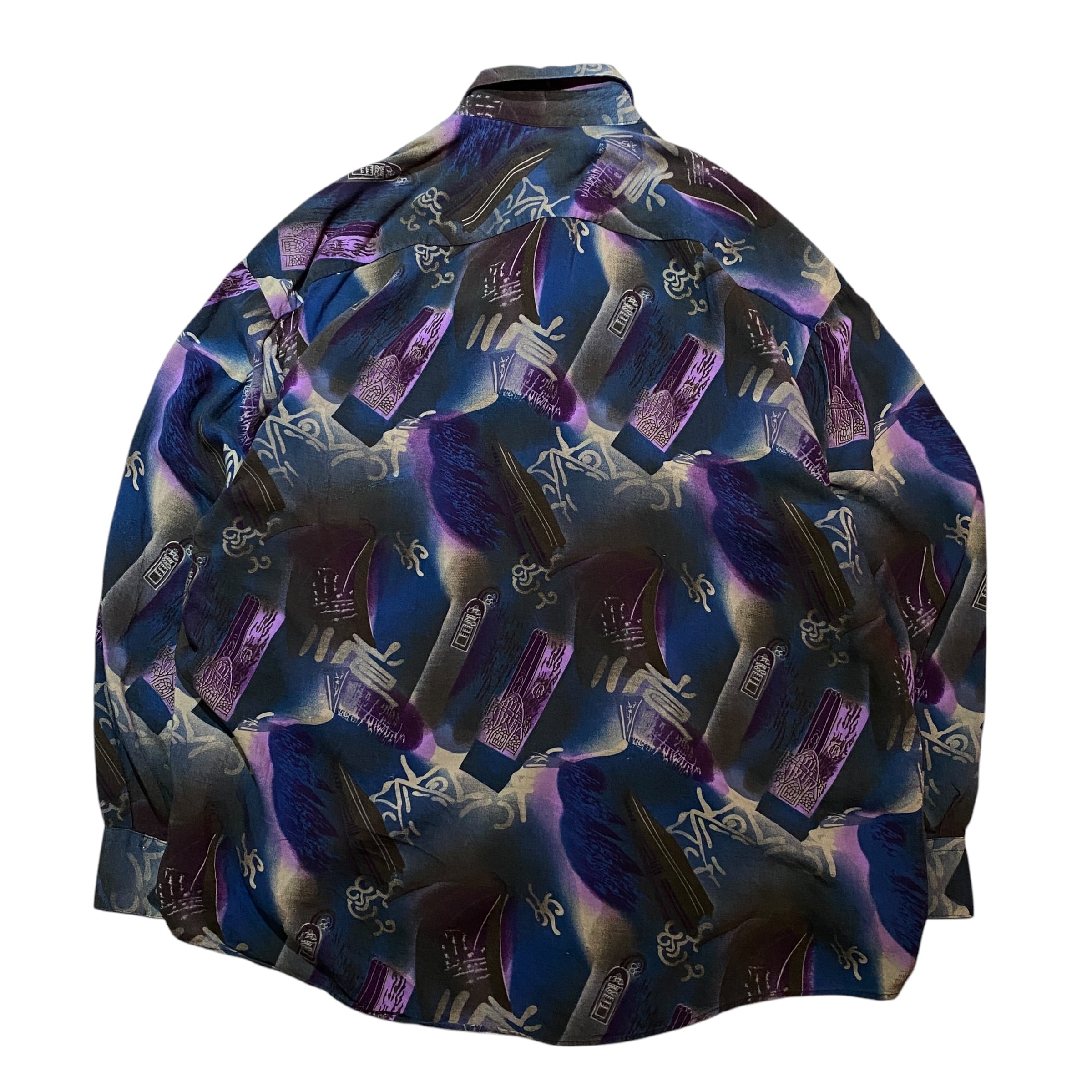 レーヨン100%の総柄デザインシャツ。