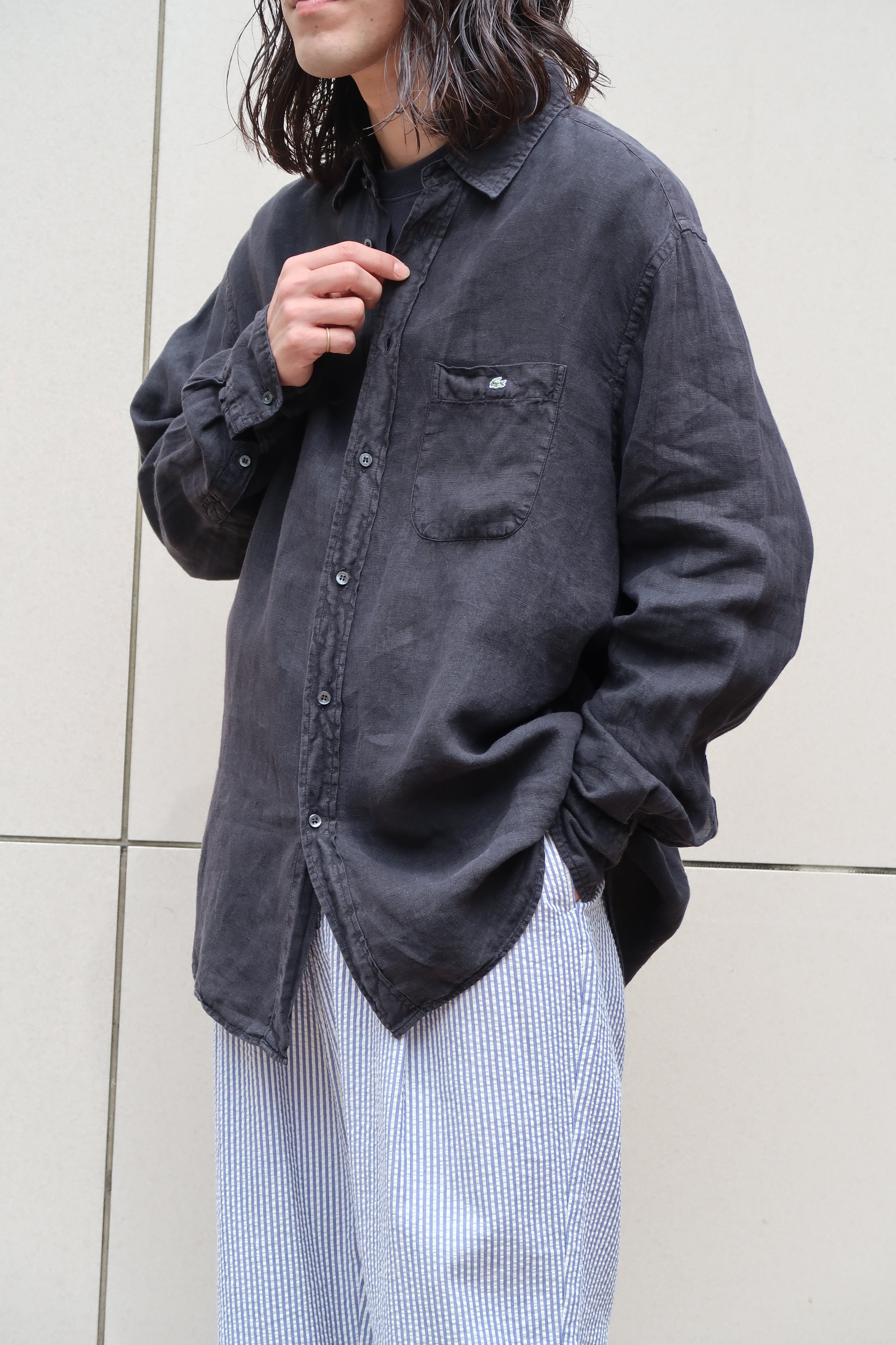 ラコステの黒リネンシャツ。