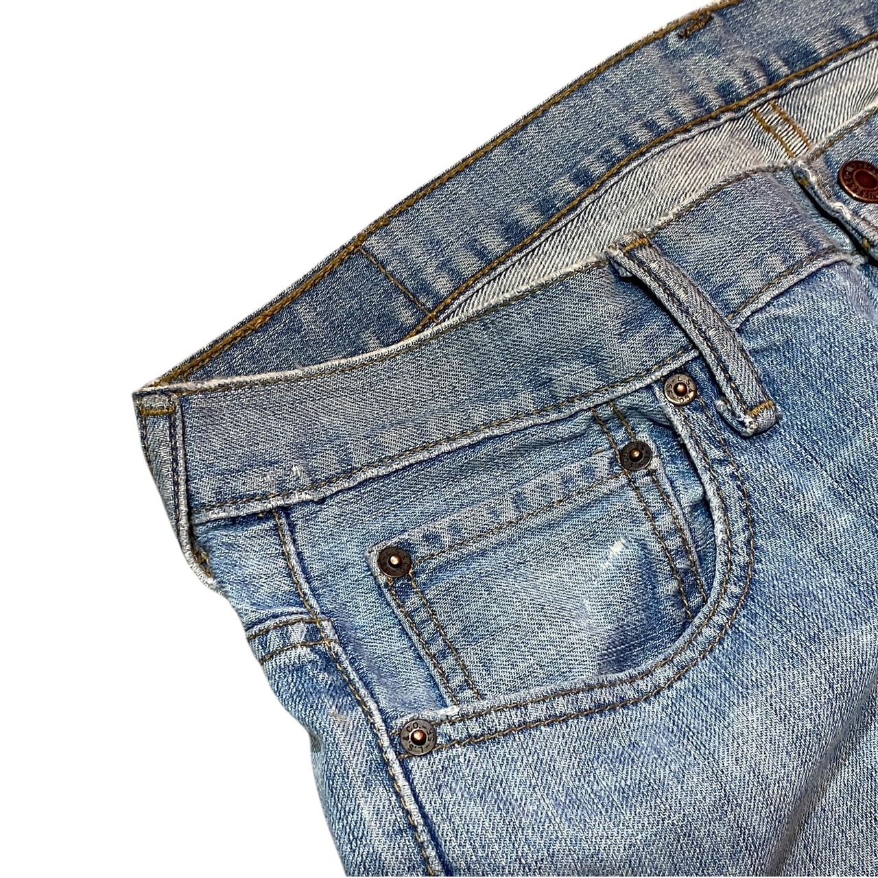 デニム特有の全体的な色落ちが見られます。
