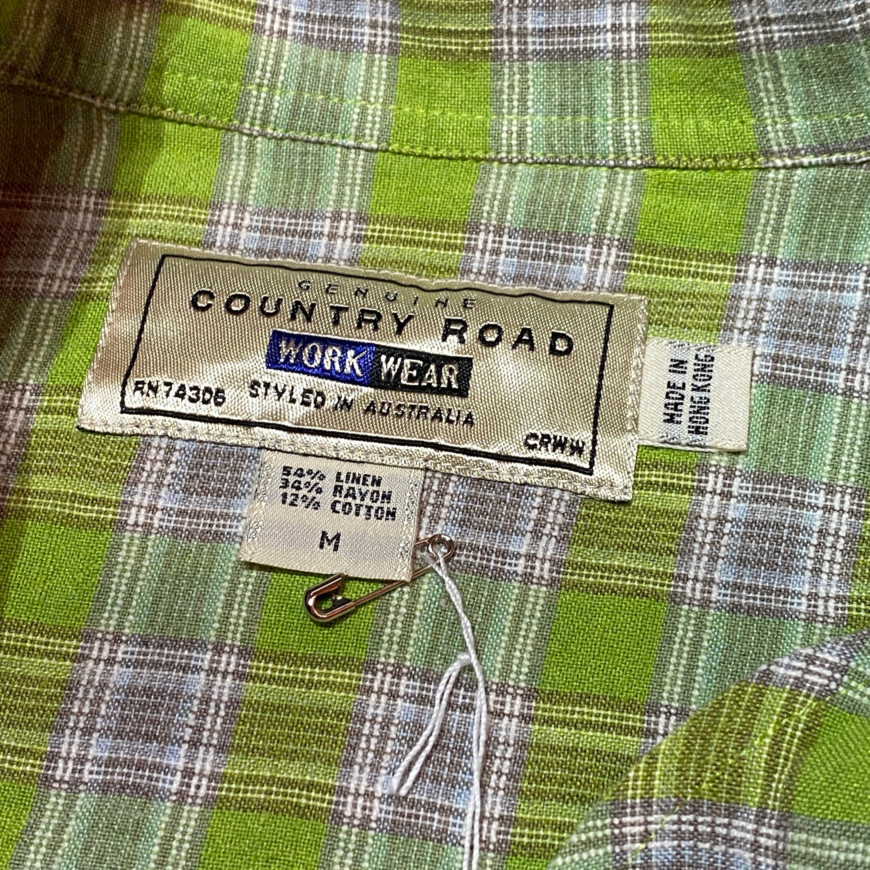 鮮やかな黄緑カラーが素敵なチェックシャツ。
