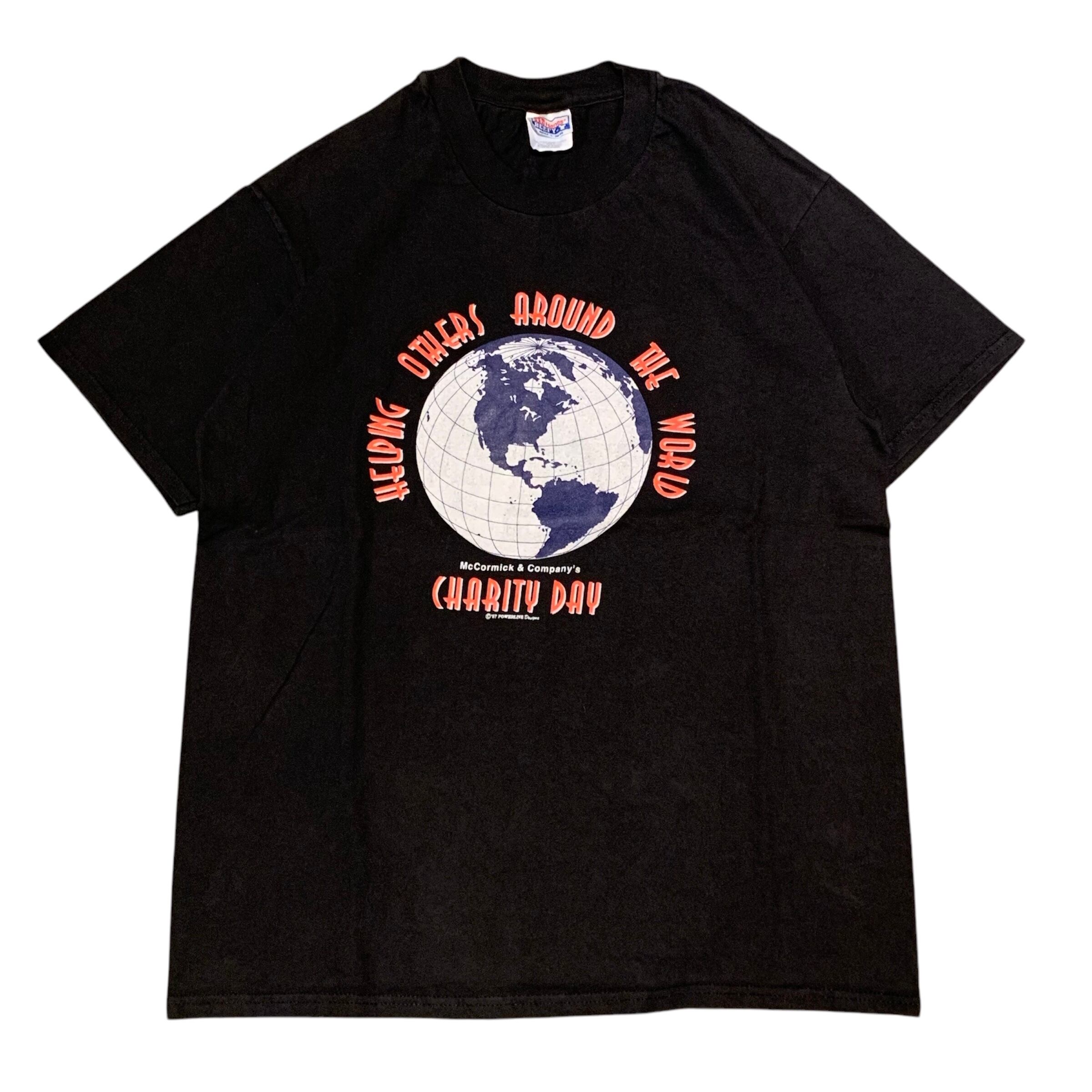 Hanesの黒ボディに地球がプリントされた雰囲気よい1着です。97年のコピーライト入り。