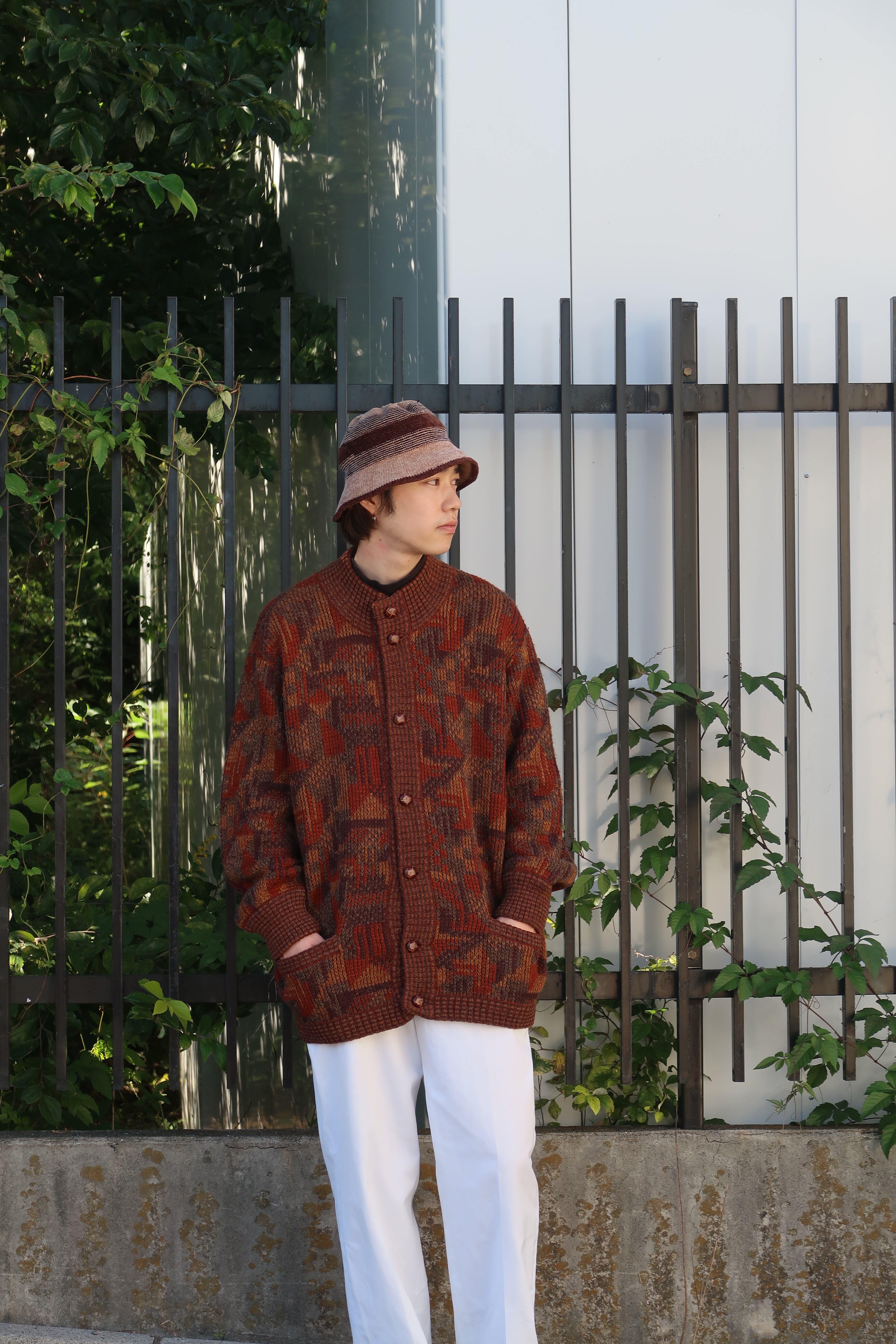 スタンドカラーの襟やざっくりと編まれたローゲージ編みも特徴的で魅力的なディテールです!