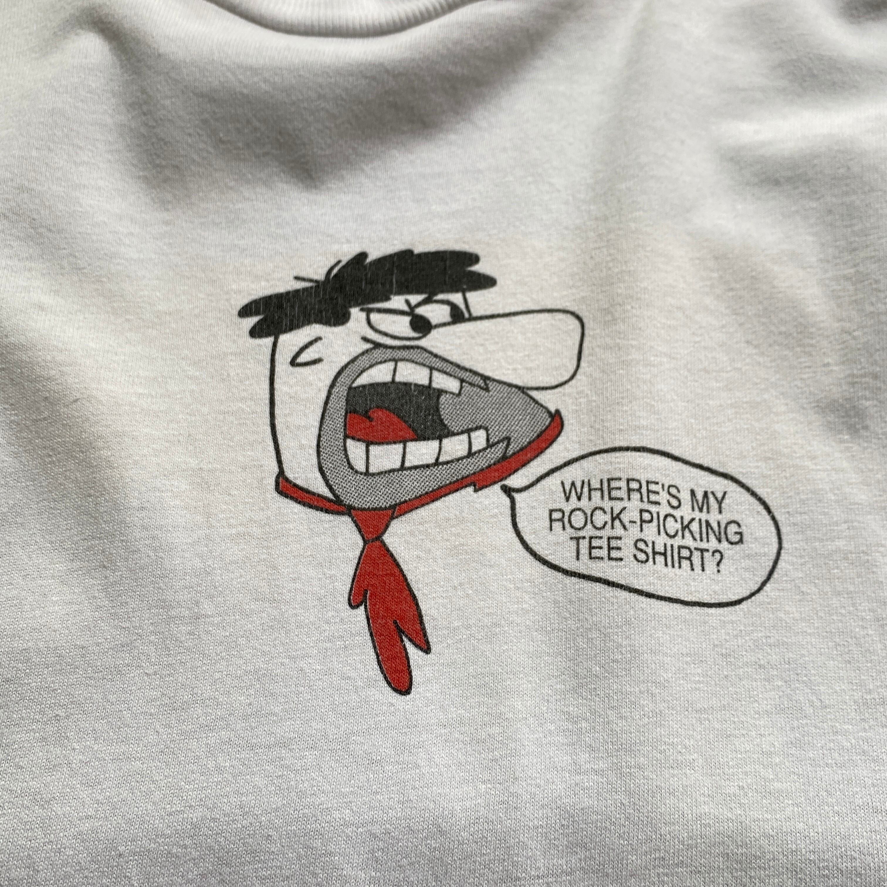 それぞれ有名な海外のアニメキャラが集まったパロディ物で非常に珍しくポップな良いプリントTです。
